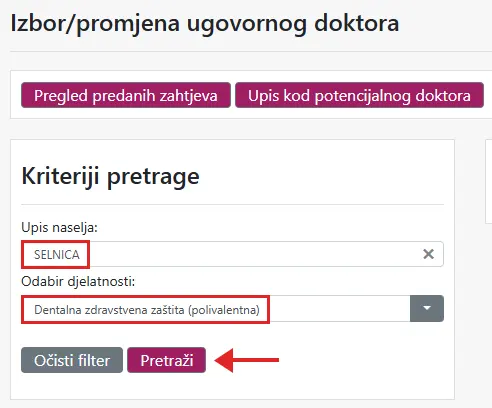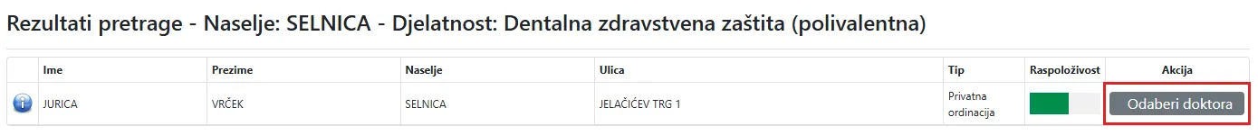 Te kod Imena i Prezimena Jurica Vrček klikni “Odaberi doktora”